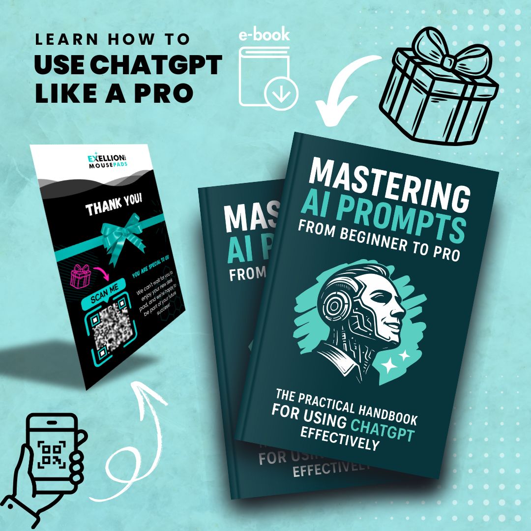 🔹 FREE GIFT #2 – With the rise of AI, the opportunities to start and effortlessly run an online business are growing every single day. Scan the QR code and explore how to make the most of these exciting new possibilities using ChatGPT! With the help of the Smart Desk Mat, the complete handbook, and this powerful guide in your hands, you're not just catching up with the future - you're getting ahead of it!